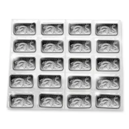 The unique aesthetic of this silver bar makes it a favourite of both collectors and investors. Sold individually in sealed plastic or in mylar plastic sheets of 20.