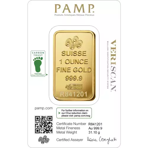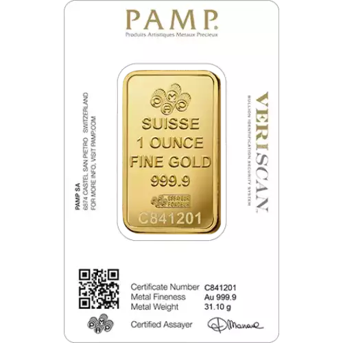 These 1 oz PAMP Fortuna gold bars are manufactured by PAMP Suisse. Each 1 oz gold bar has been struck with its weight and fineness of 999.9. The reverse of the bar features the beautiful design of the ‘Goddess of Good Fortune’ – ‘Lady Fortuna’.