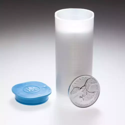 This striking, 1 troy ounce coin is the first in the 4-coin Birds of Prey series from the Royal Canadian Mint, and is composed of 99.99% fine silver. The reverse of this coin boasts a depiction of the regal Peregrine Falcon, a predator who usually dwells east of the Rockies and south of the tree line; some early indigenous North American cultures used the image of the Peregrine Falcon as a symbol of “aerial (celestial) power”. The obverse displays the iconic effigy of HRM Queen Elizabeth II, with the words “Elizabeth II 5 Dollars 2014” emblazoned around the rim; the level of detail in the engraving of this coin is a testament to the craftsmanship of the Royal Canadian Mint.