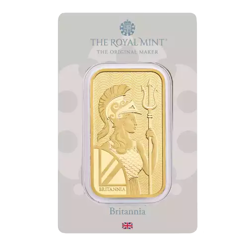 This gold bar features Britannia, the embodiment of British courage and fortitude, through an iconic design by Jody Clark. Containing 1 oz of 999.9 fine gold, this bar is a welcome addition to investment portfolios looking to attain financial stability for loved ones and dependants. This bar is presented in secure, Britannia-branded blister packaging for safe transportation and storage.